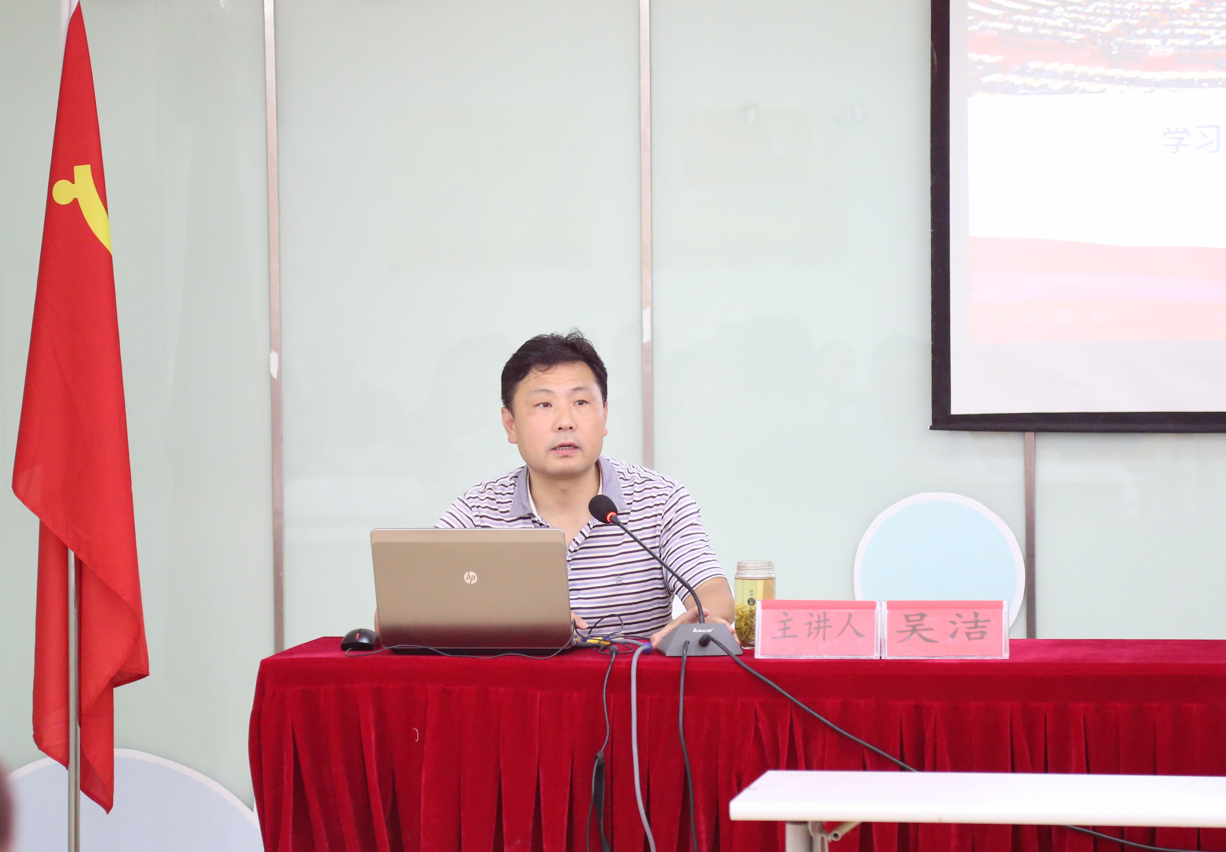 授課中,吳潔教授以“學(xué)習(xí)貫徹習(xí)近平新時(shí)代中國特色社會(huì)主義思想和黨的十九大精神”為主題,從深刻領(lǐng)會(huì)黨的十九大主題及主要成果、習(xí)近平新時(shí)代中國特色社會(huì)主義思想的歷史地位和豐富內(nèi)涵、十八大以來黨和國家發(fā)生的歷史性變革、新時(shí)代的社會(huì)主要矛盾新變化、全面建設(shè)現(xiàn)代化強(qiáng)國的戰(zhàn)略部署、堅(jiān)定不移全面從嚴(yán)治黨的重大部署等六個(gè)方面,對(duì)習(xí)近平新時(shí)代中國特色社會(huì)主義思想及黨的十九大精神作了系統(tǒng)、全面的解讀與闡述。吳教授結(jié)合自己的學(xué)習(xí)體會(huì),運(yùn)用了大量生動(dòng)的數(shù)據(jù)和事例,語言通俗易懂,邏輯清晰有秩,不斷引起在場(chǎng)黨員的共鳴,會(huì)上反響熱烈。