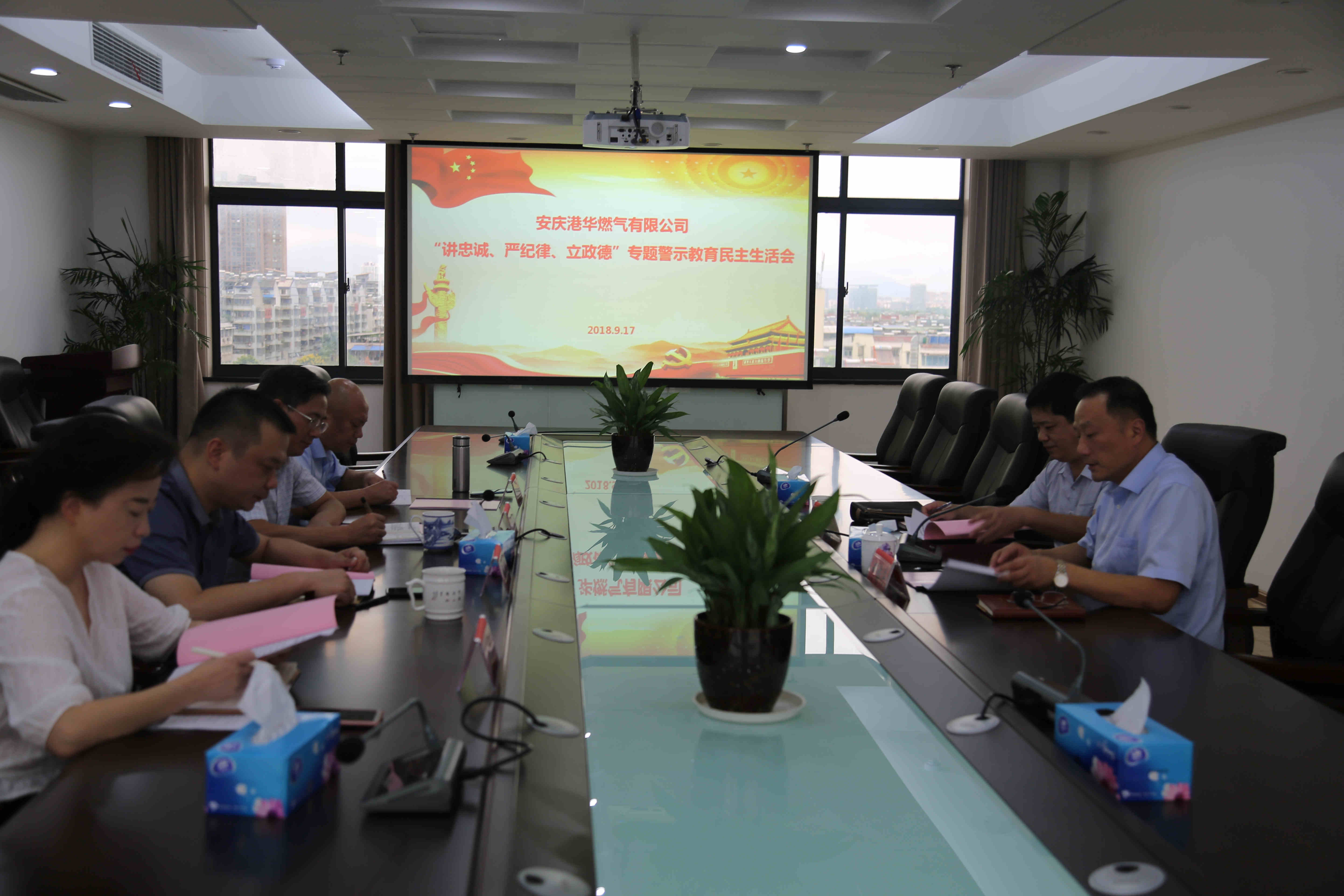 917日,安慶港華燃?xì)庥邢薰军h委召開“講忠誠、嚴(yán)紀(jì)律、立政德”專題警示教育民主生活會(huì)。市城管局黨委委員、副局長姚志蒞會(huì)指導(dǎo),公司黨委書記、董事長何族興主持會(huì)議。