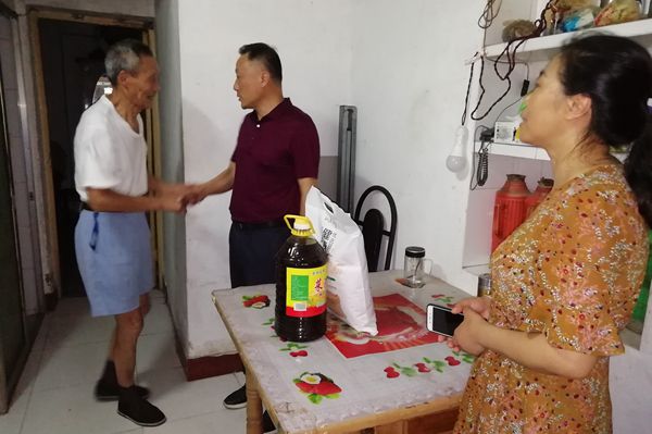 在社區(qū)工作人員陪同下,何族興來到社區(qū)獨(dú)居老黨員田國(guó)英家走訪慰問,與老人親切交談,關(guān)切詢問他的身體和生活狀況,查看他家燃?xì)庠O(shè)施安全狀況,并叮囑他高溫季節(jié)注意防暑,有困難及時(shí)聯(lián)系。隨后,何族興一行還來到全國(guó)最美家庭倪明華家,詢問家中生活近況,并送上糧油等生活慰問品。