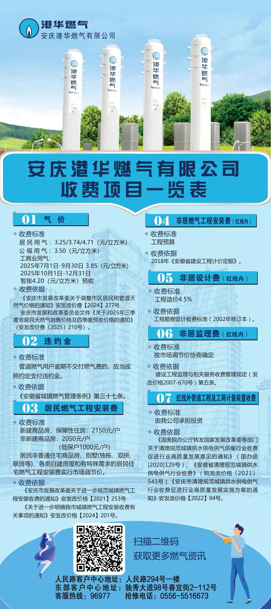 安慶港華燃氣有限公司收費項目一覽表(2025)