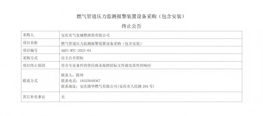 燃?xì)夤艿缐毫ΡO(jiān)測(cè)報(bào)警裝置設(shè)備采購(包含安裝)終止公告